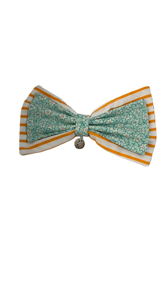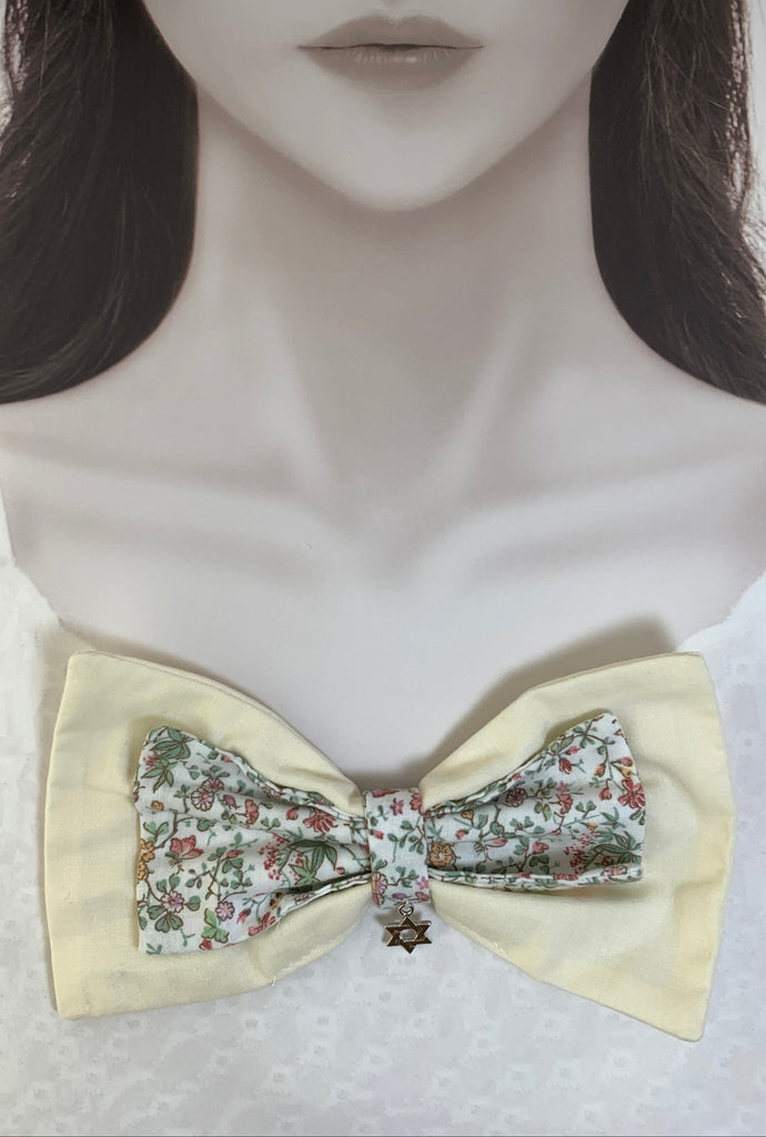 • 2 layer cotton blend fabric bow, fabric loop in the center