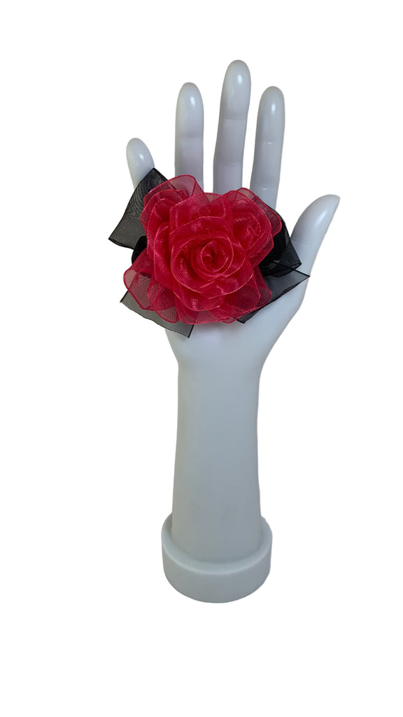 Fuchsia organza rose with black organza bow