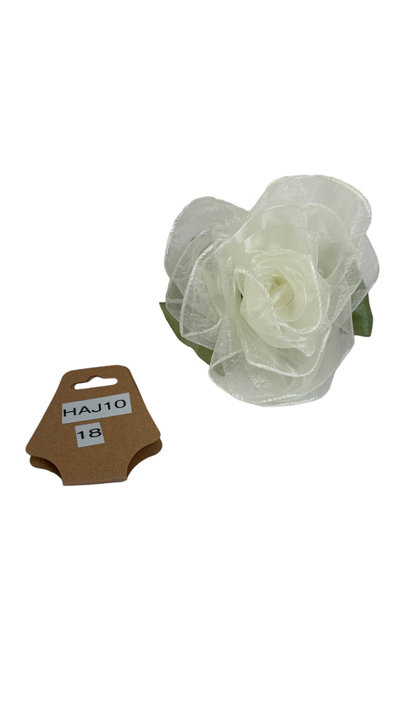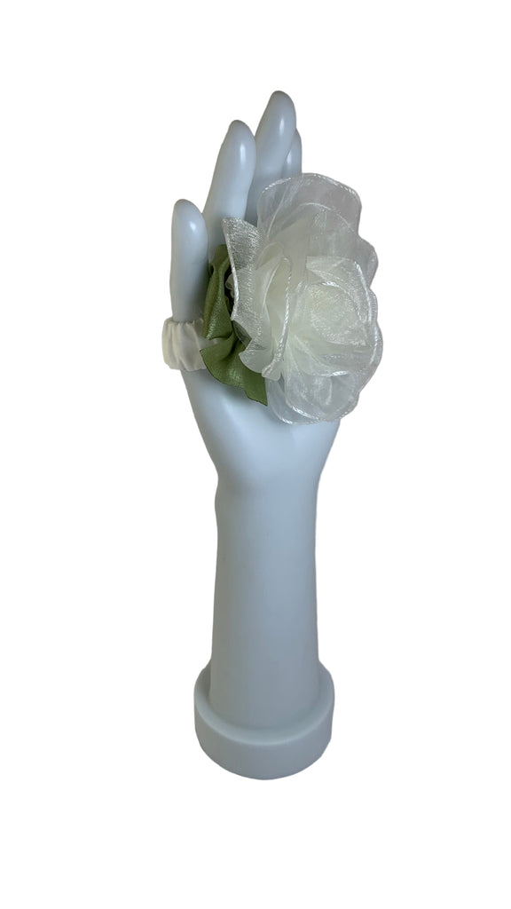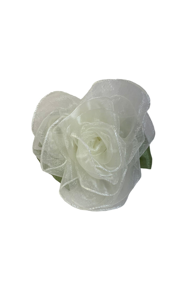 Ivory organza rose with green satin bow