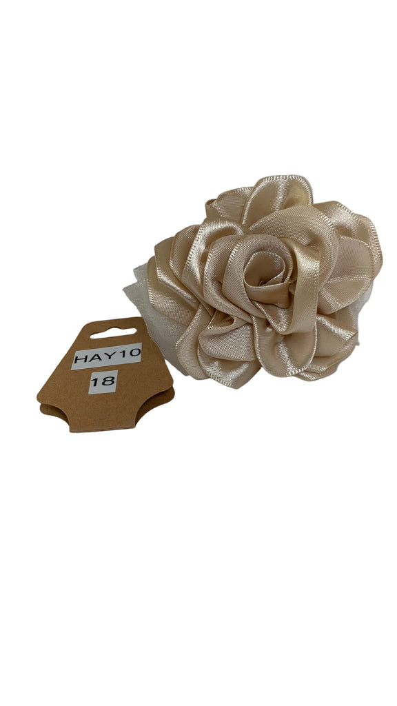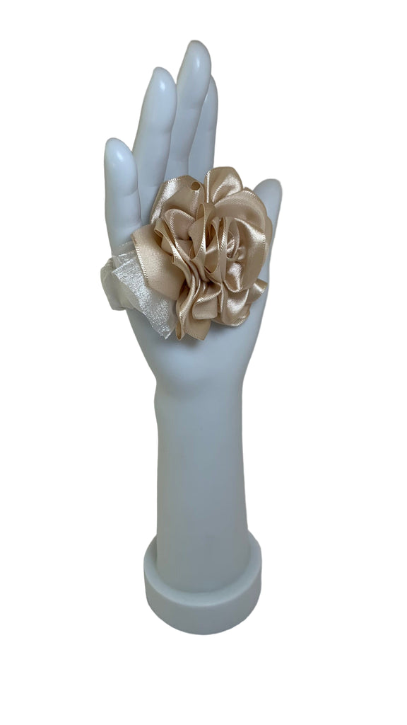 • Beige satin rose with ivory organza bow