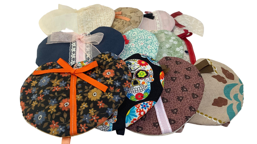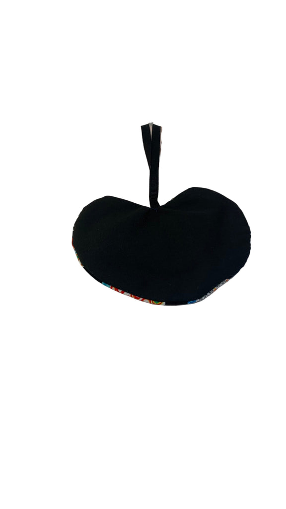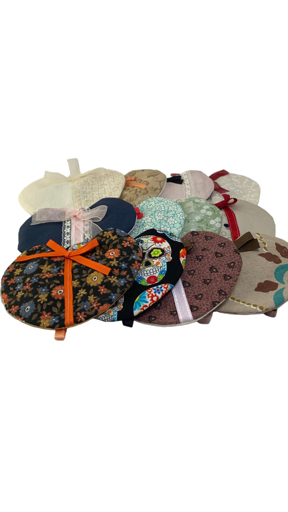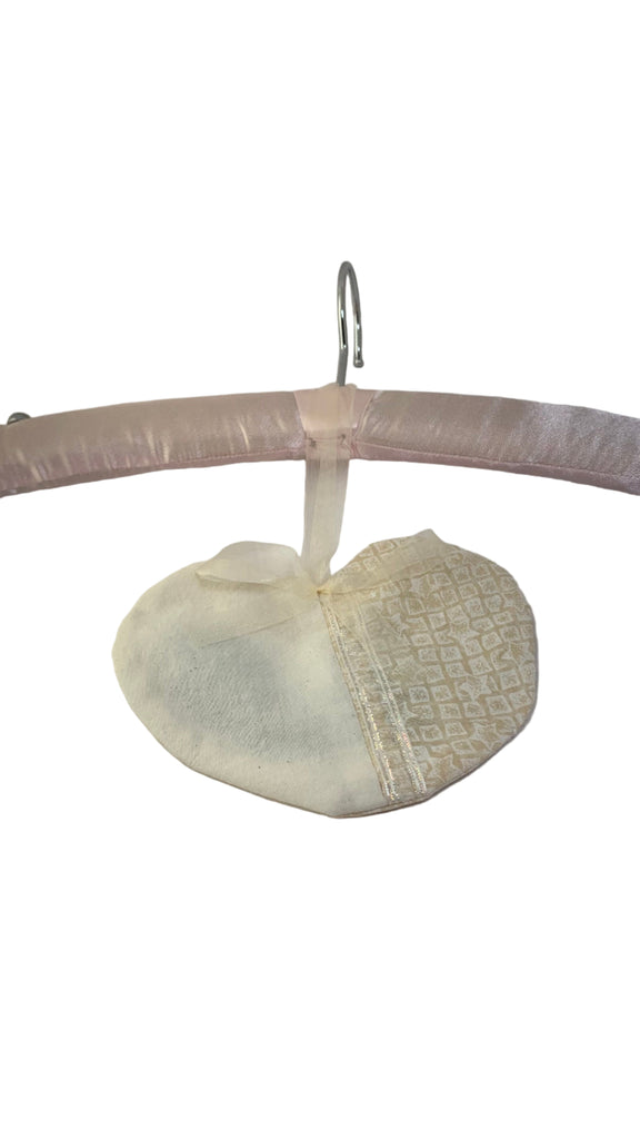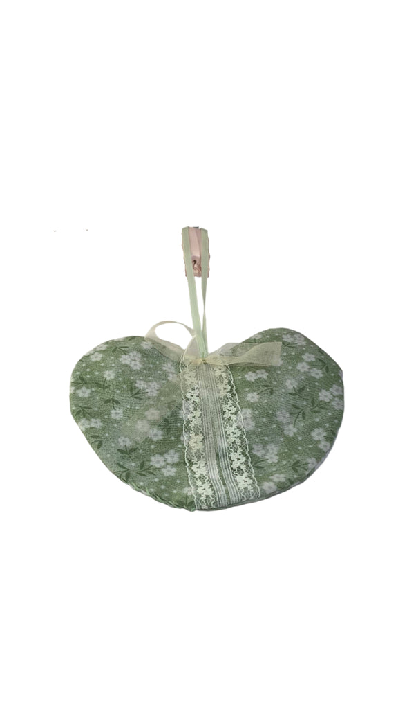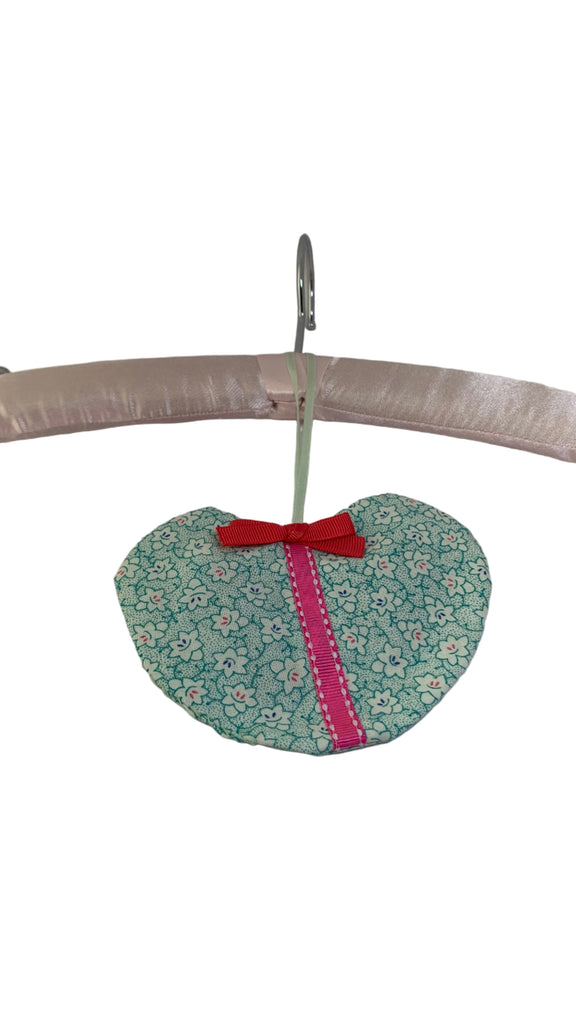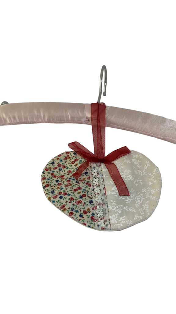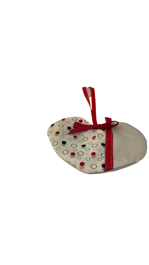 Cotton blend fabric heart shape sachet, ribbon hanging loop
