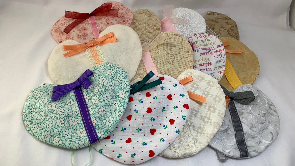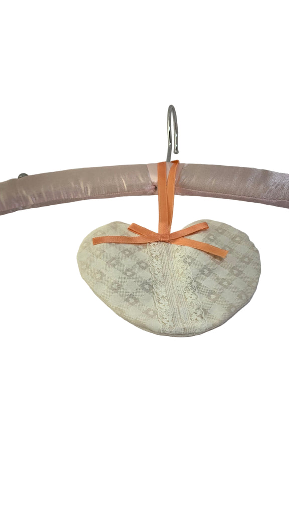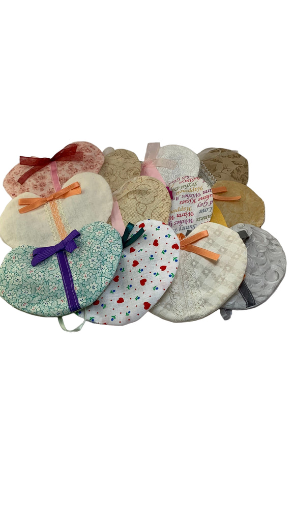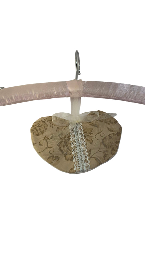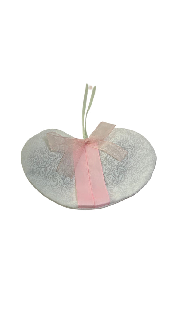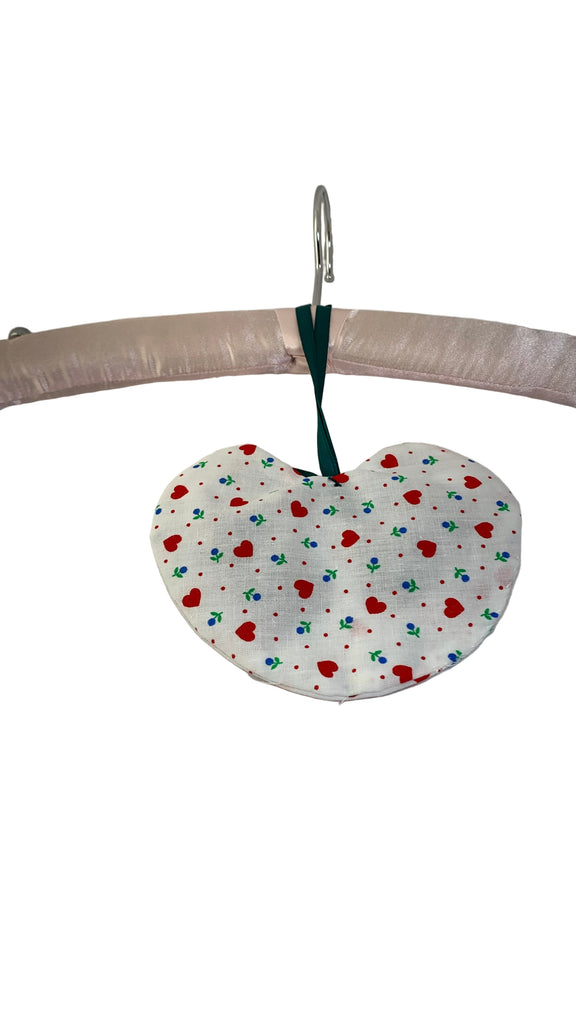 Cotton blend fabric heart shape sachet, ribbon hanging loop