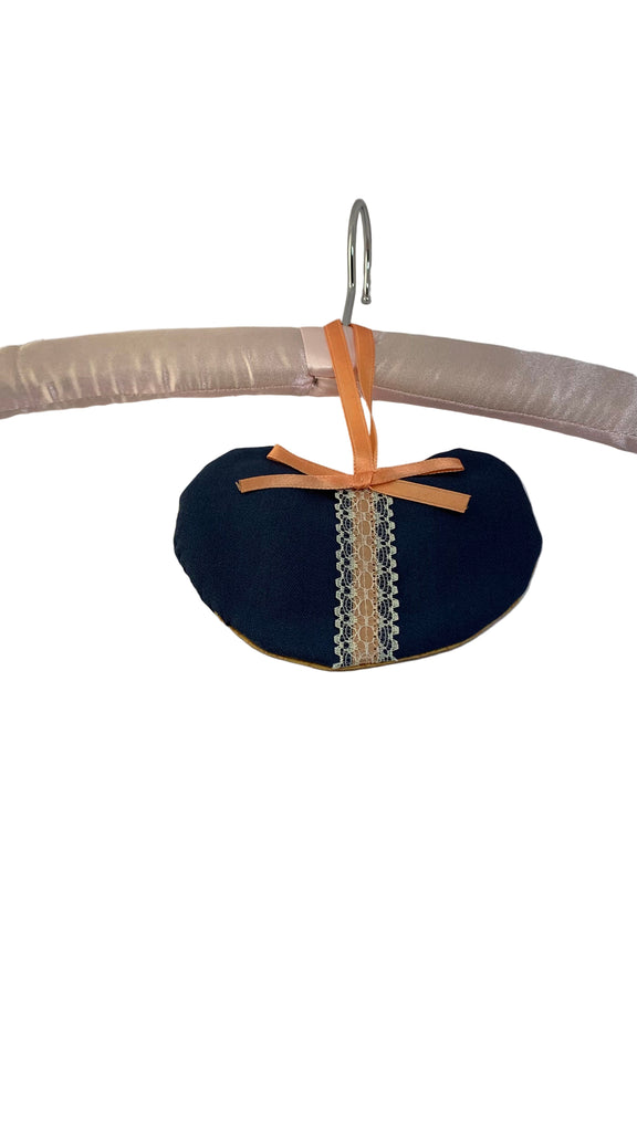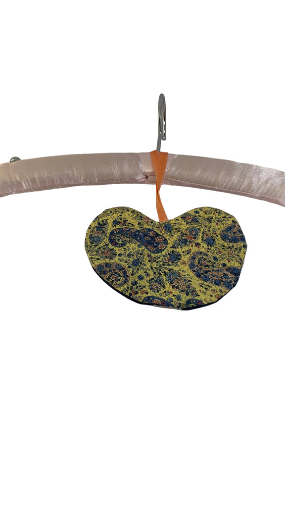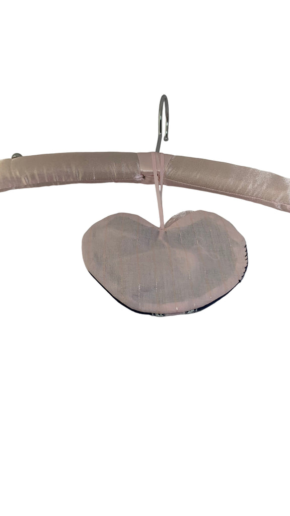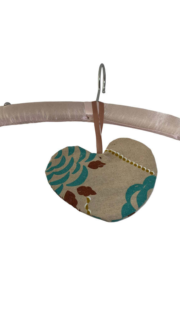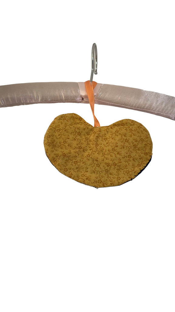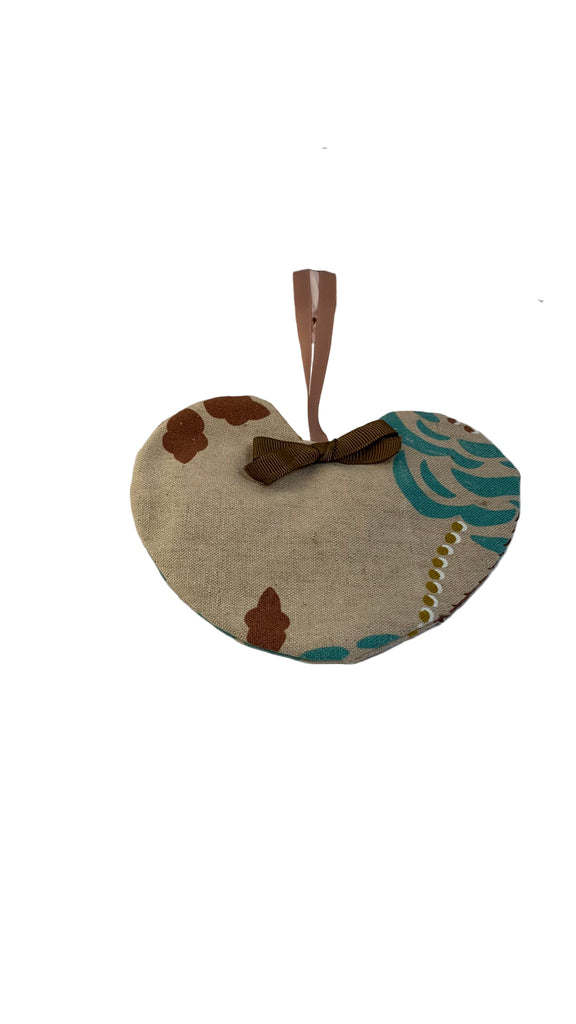 Cotton blend fabric heart shape sachet, ribbon hanging loop