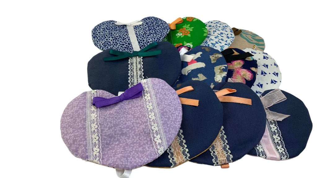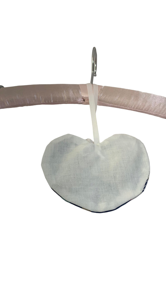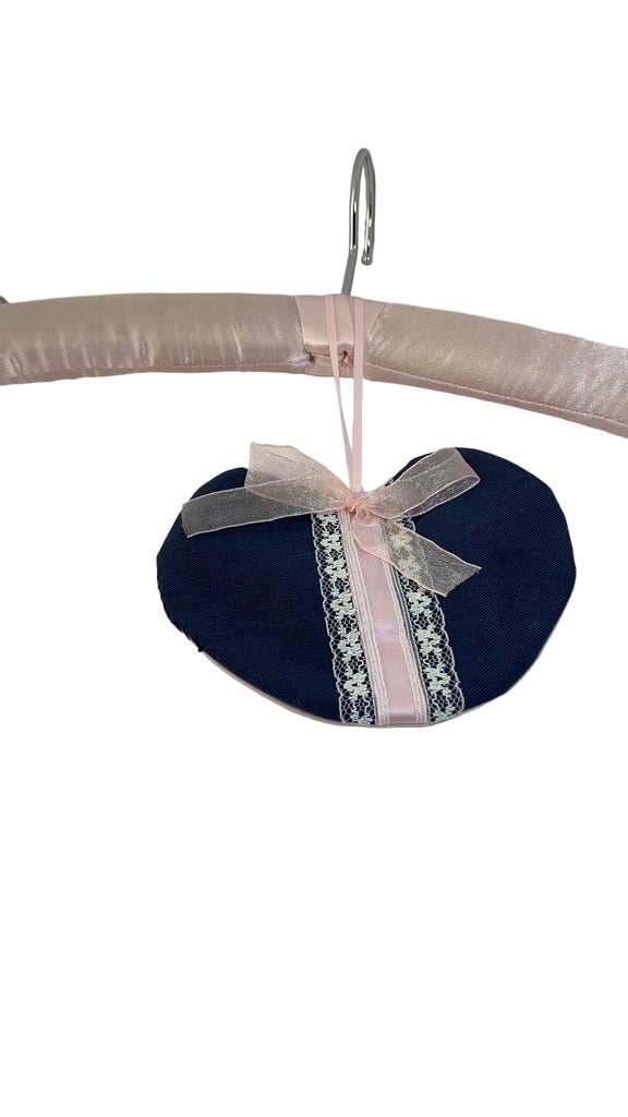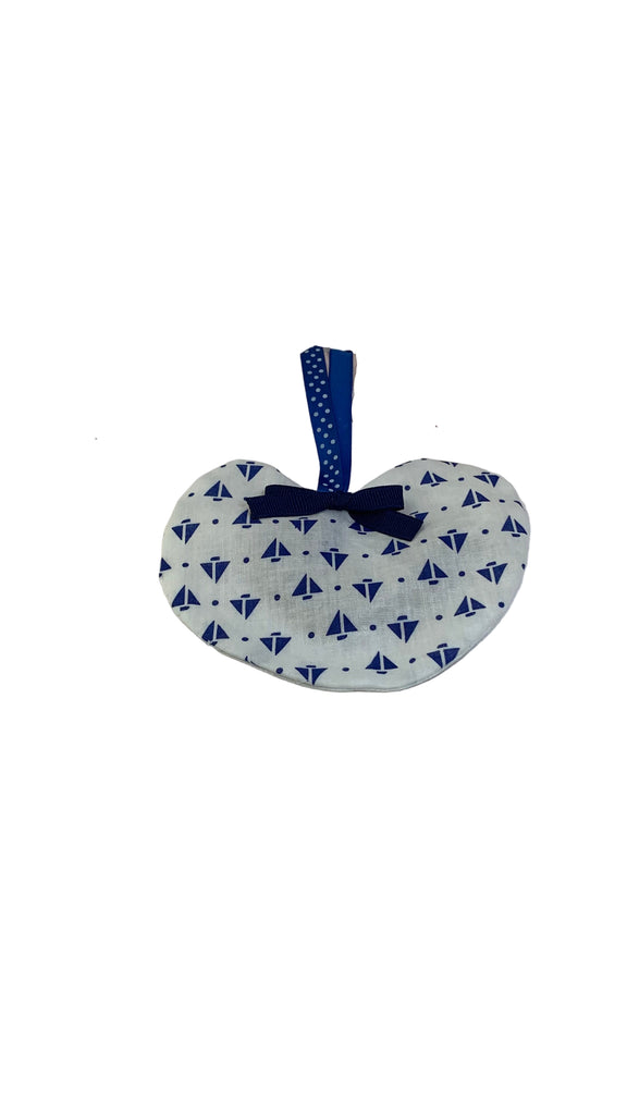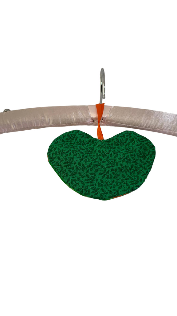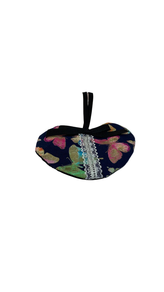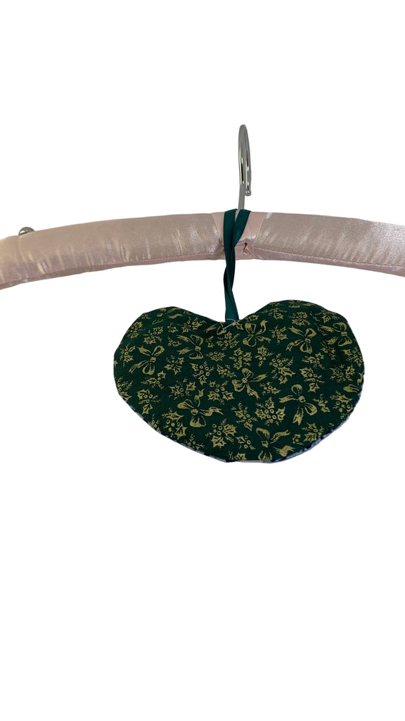 Cotton blend fabric heart shape sachet, ribbon hanging loop