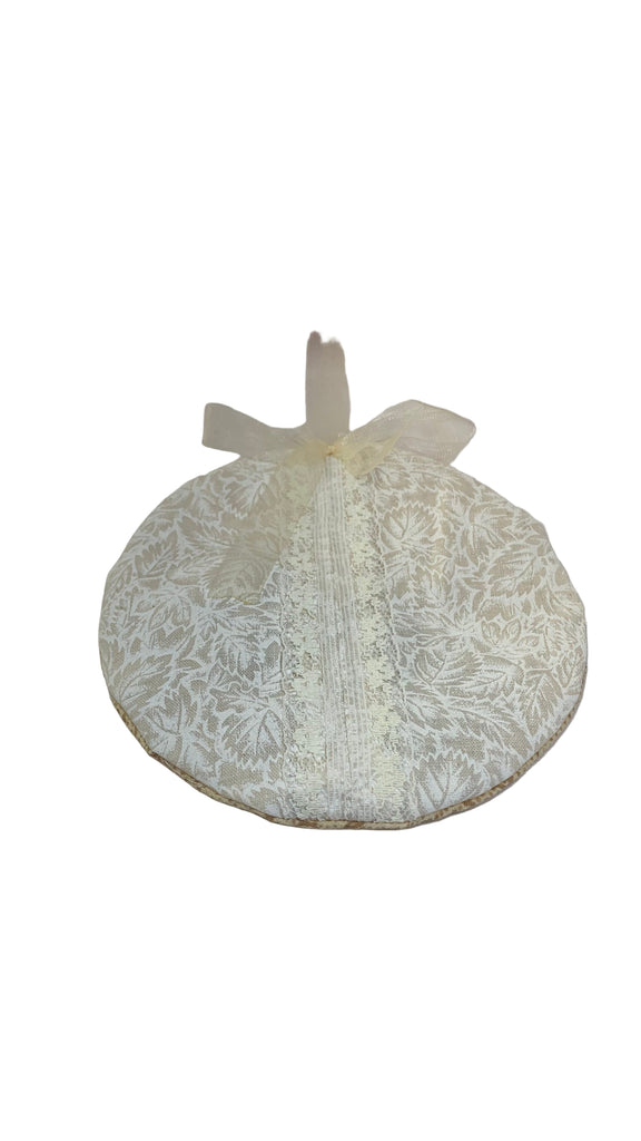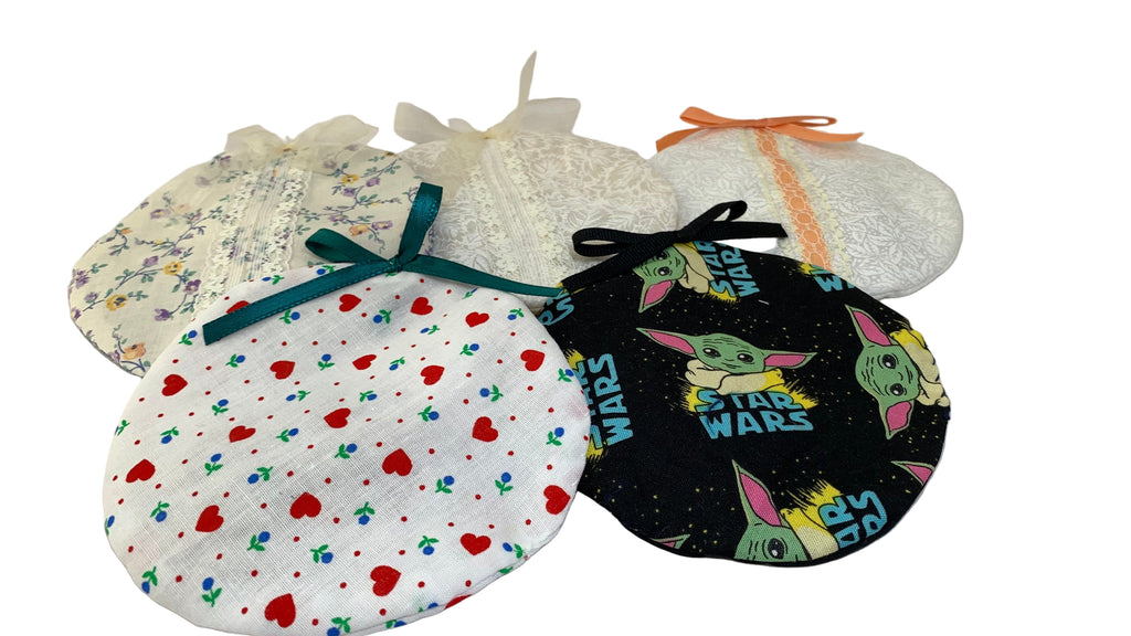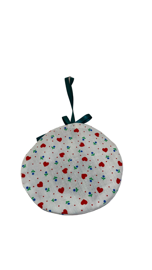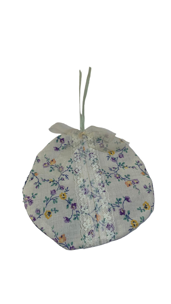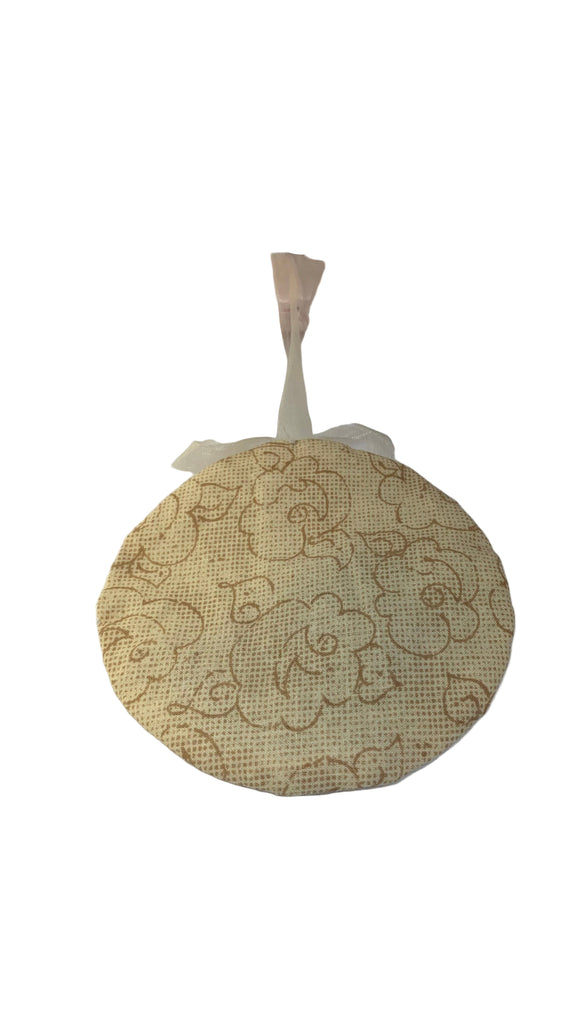 Cotton blend fabric round shape sachet, ribbon hanging loop