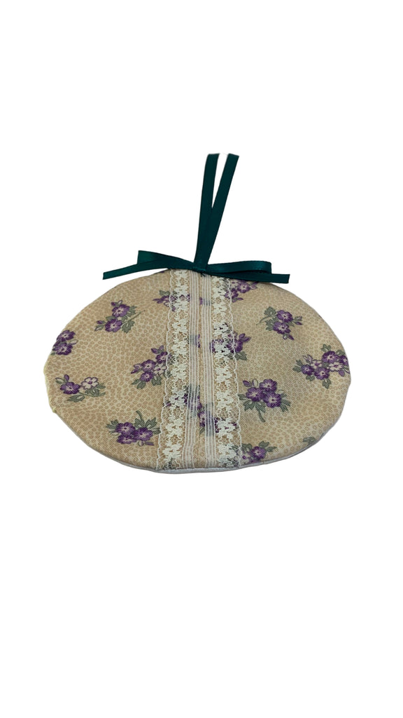 Cotton blend fabric round shape sachet, ribbon hanging loop