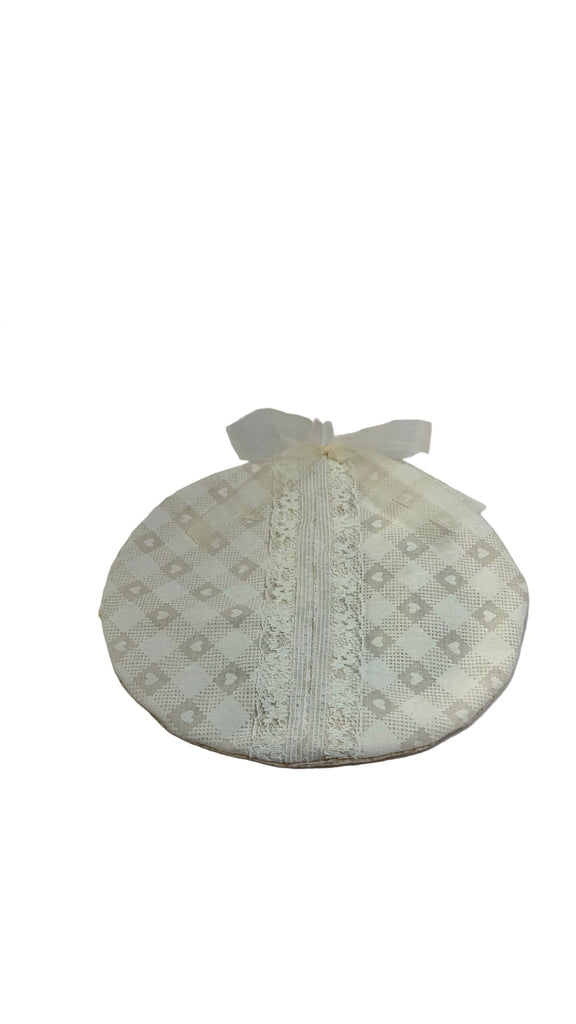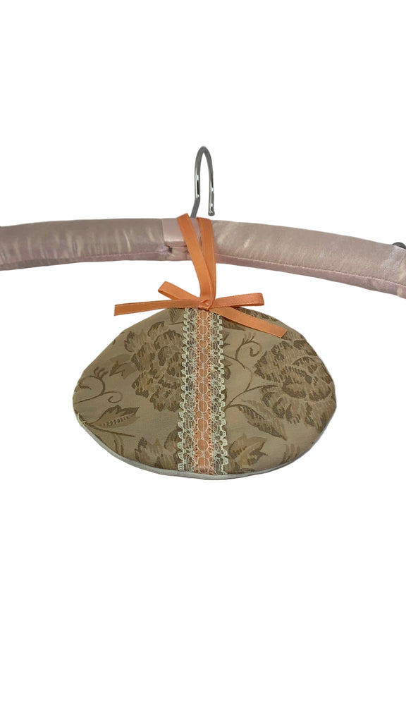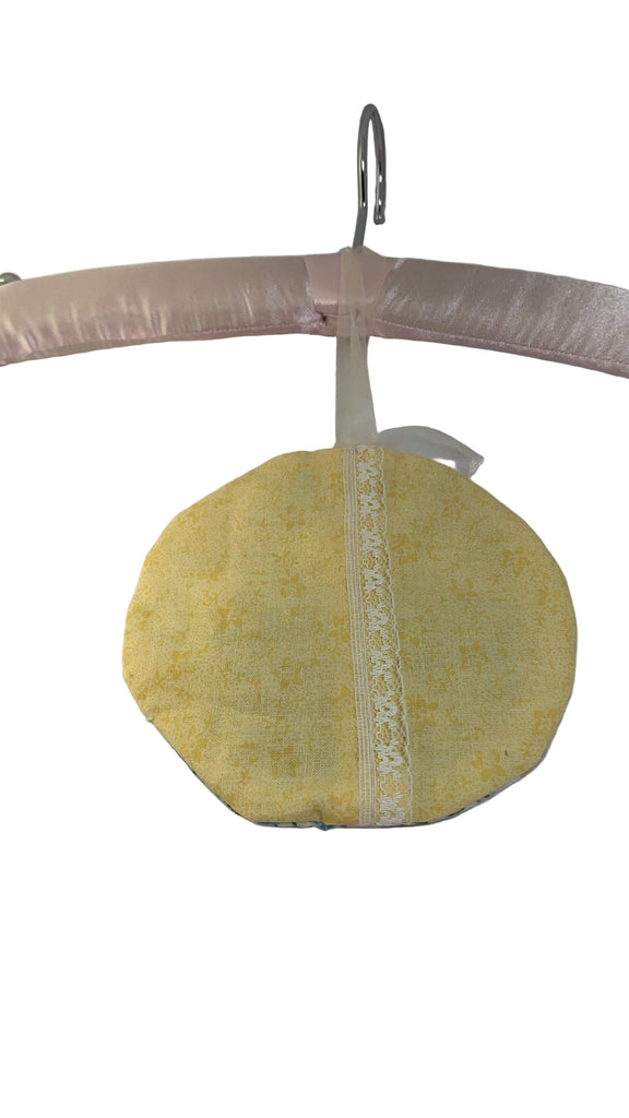Cotton blend fabric round shape sachet, ribbon hanging loop