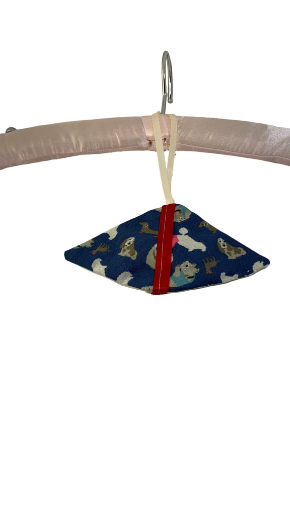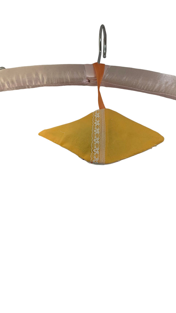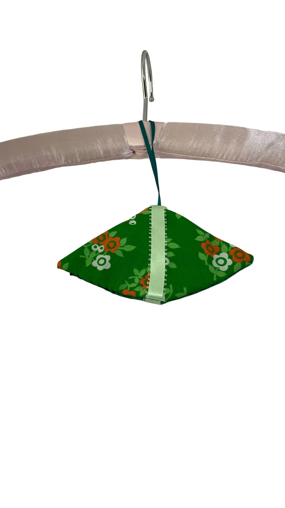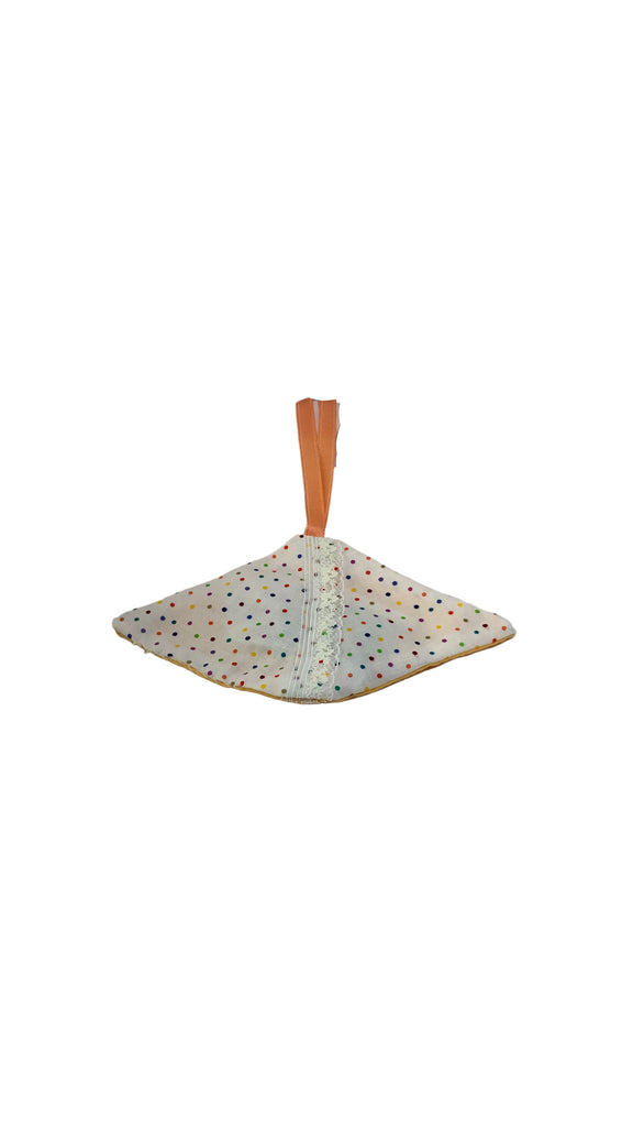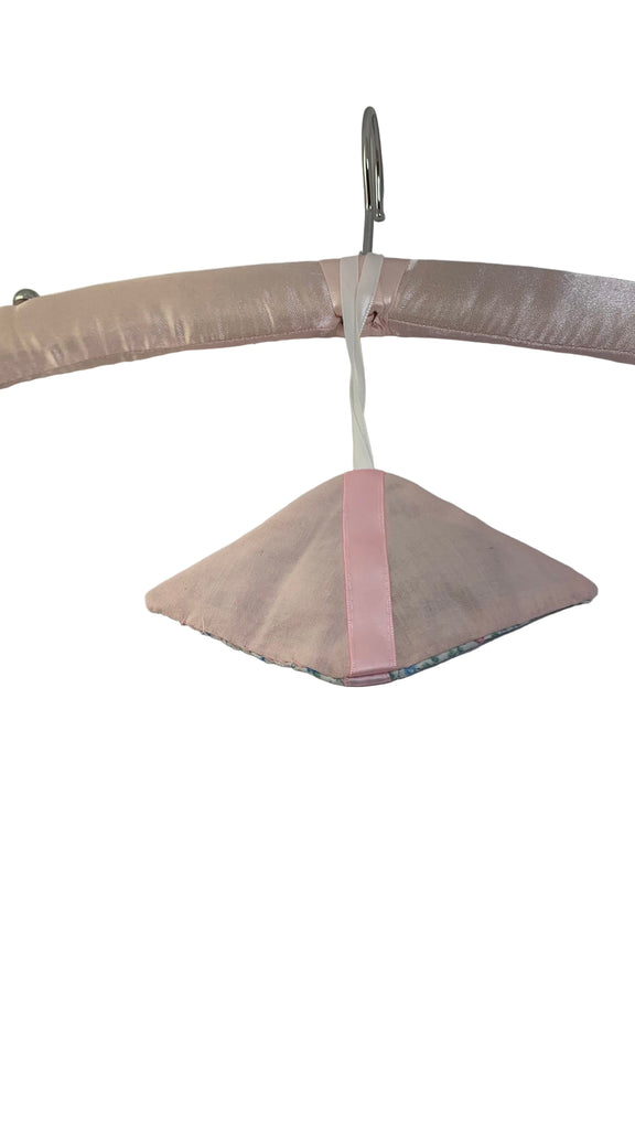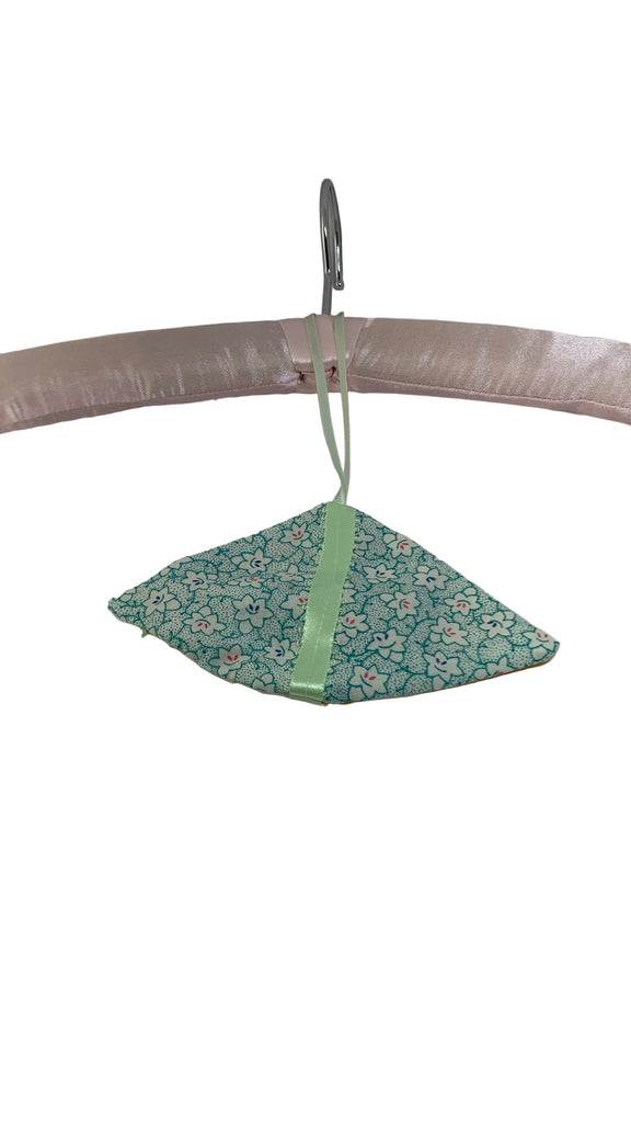 Cotton blend fabric fan shape sachet, ribbon hanging loop