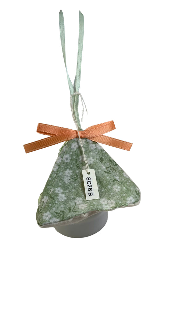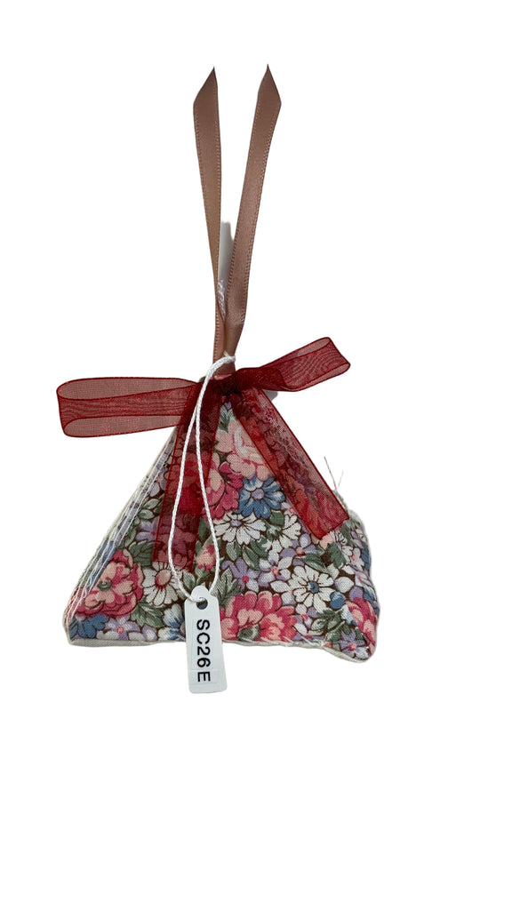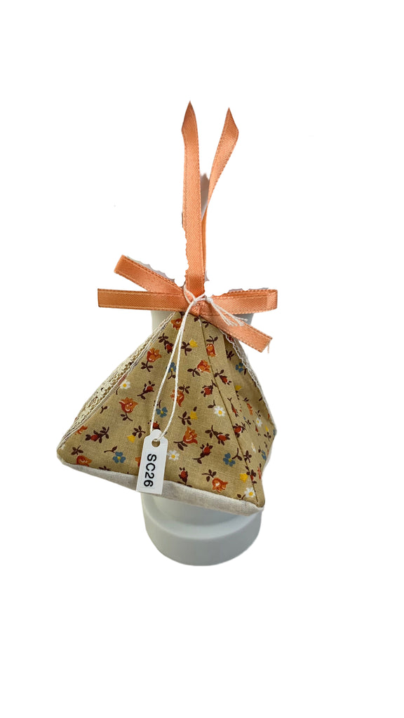 Cotton blend fabric triangle 3D shape sachet, ribbon hanging loop