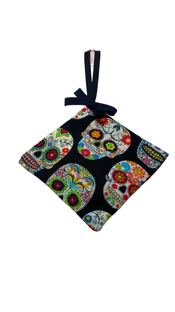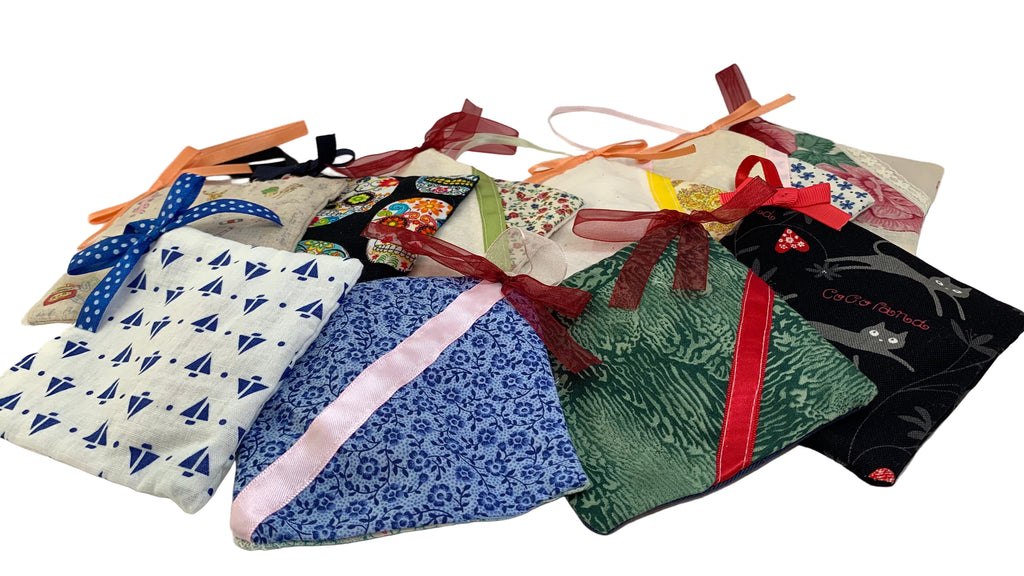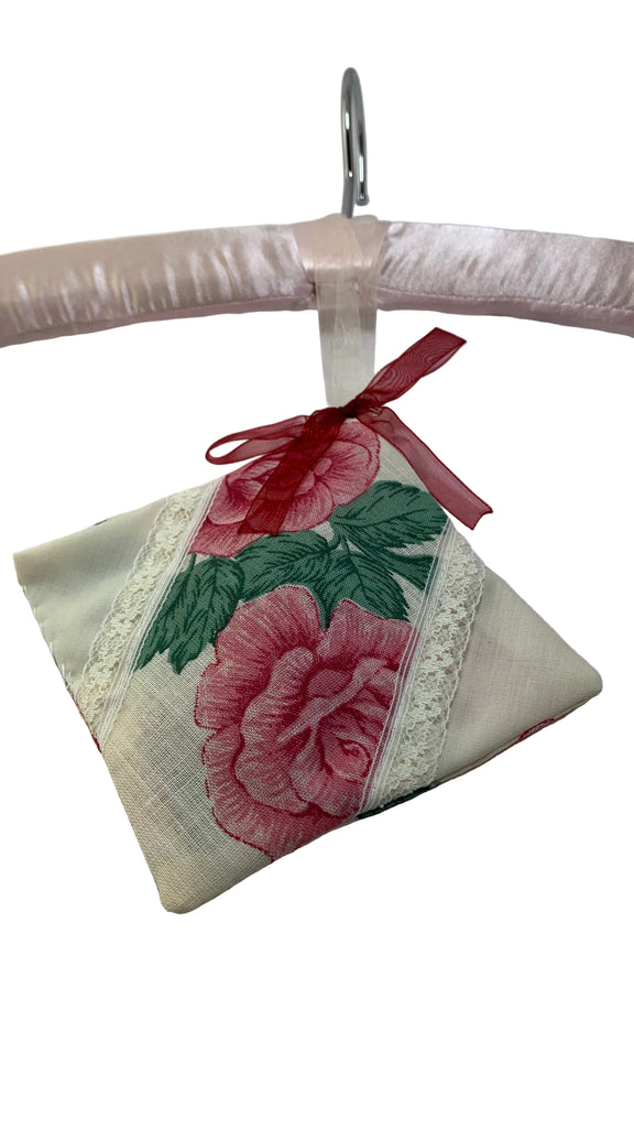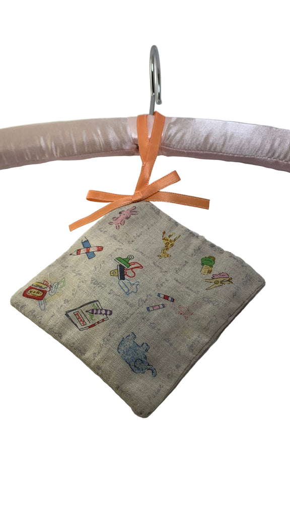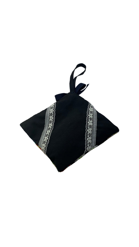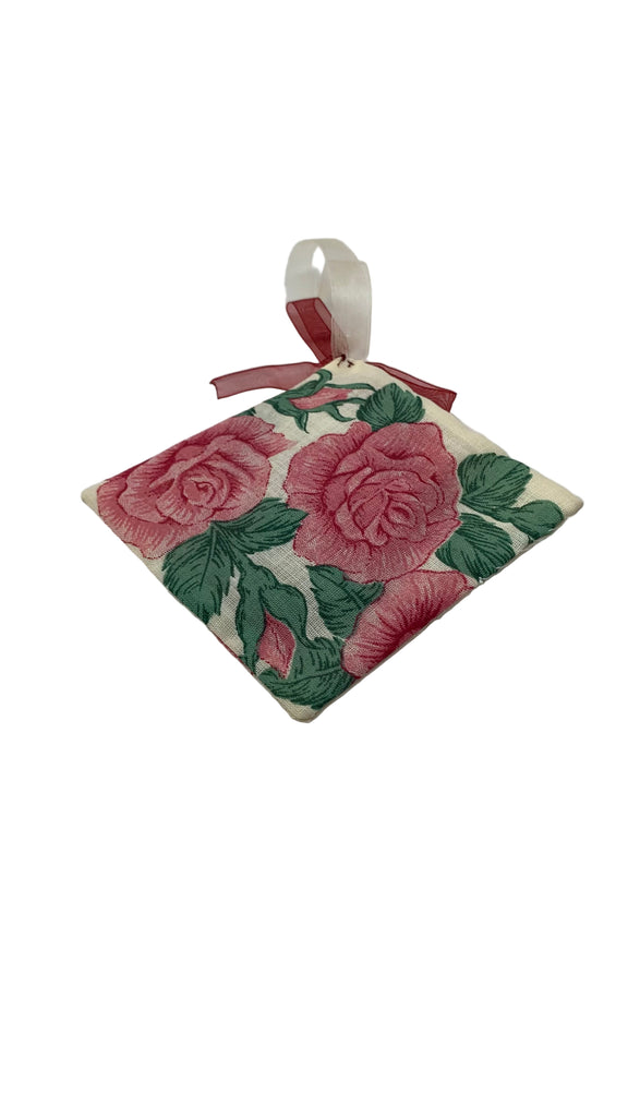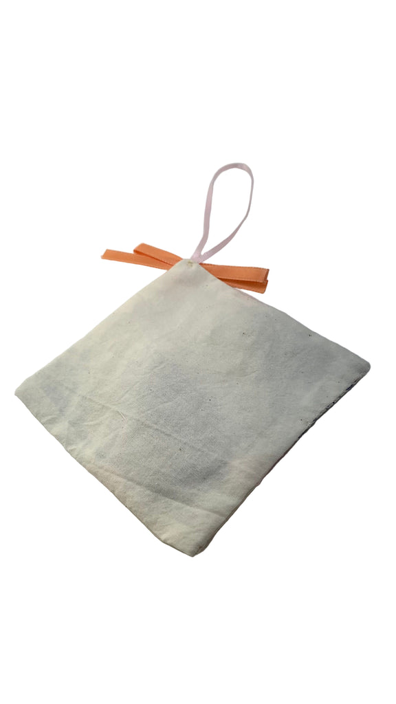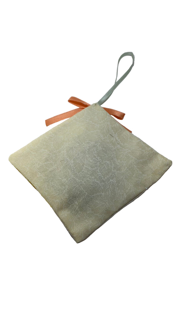 Cotton blend fabric square sachet, ribbon hanging loop