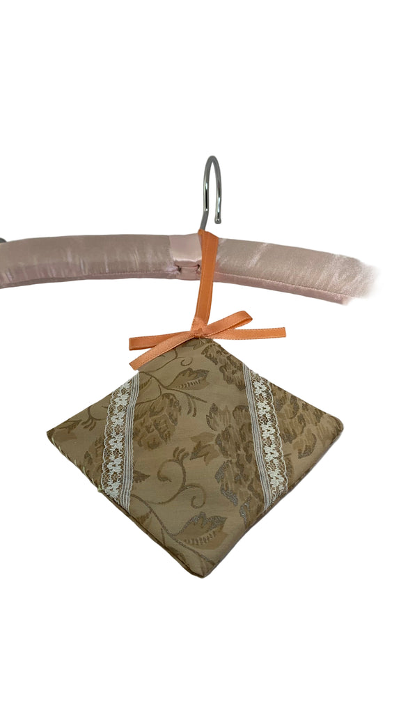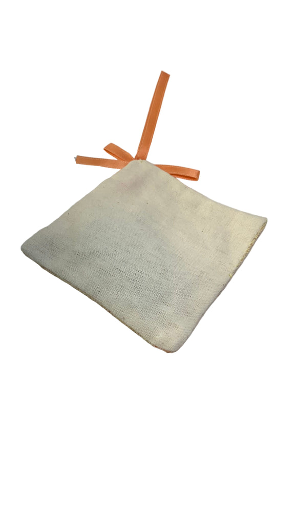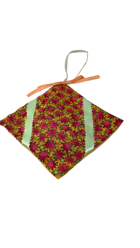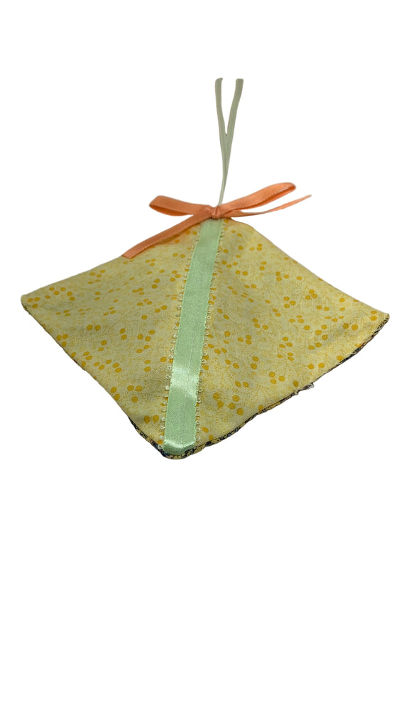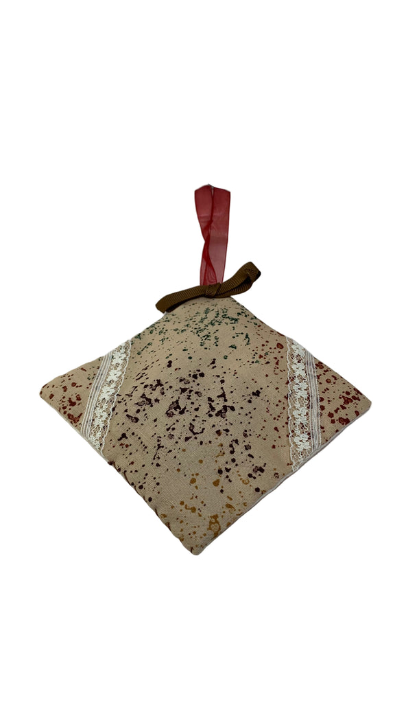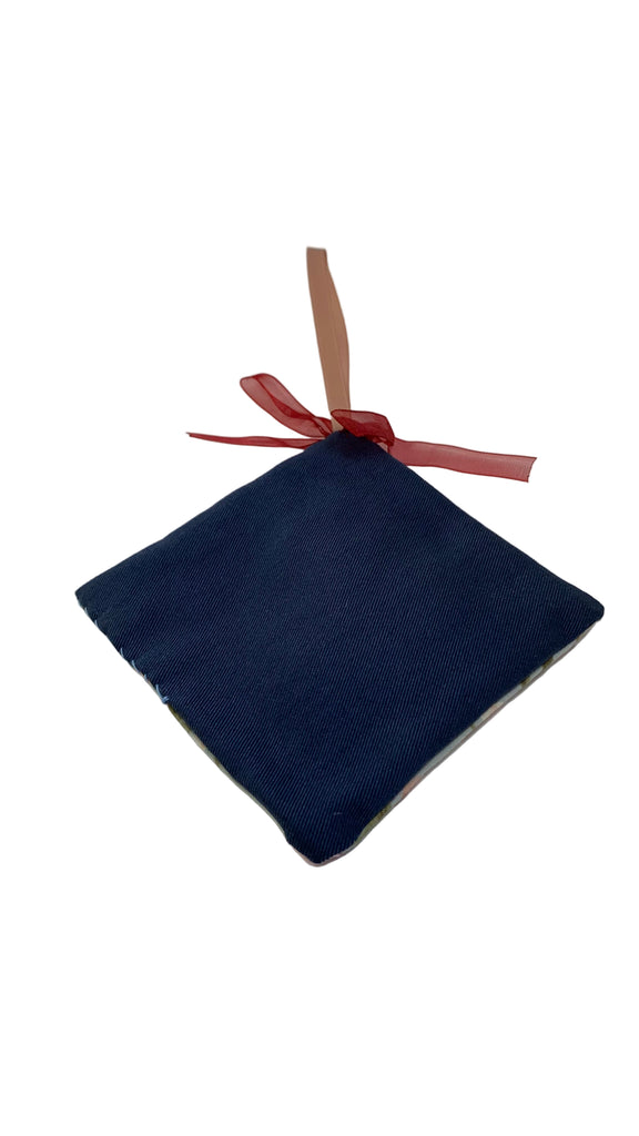 Cotton blend fabric square sachet, ribbon hanging loop