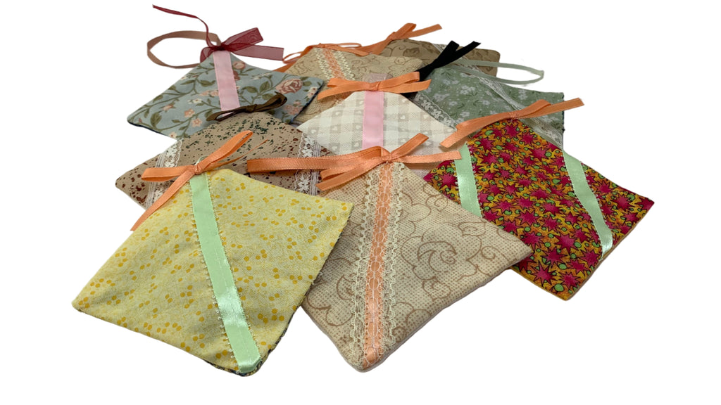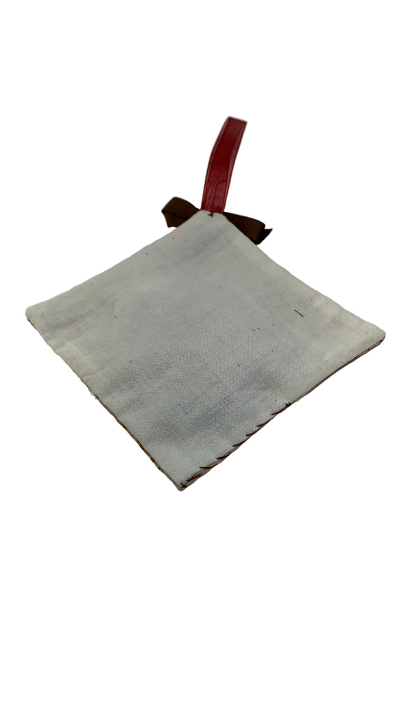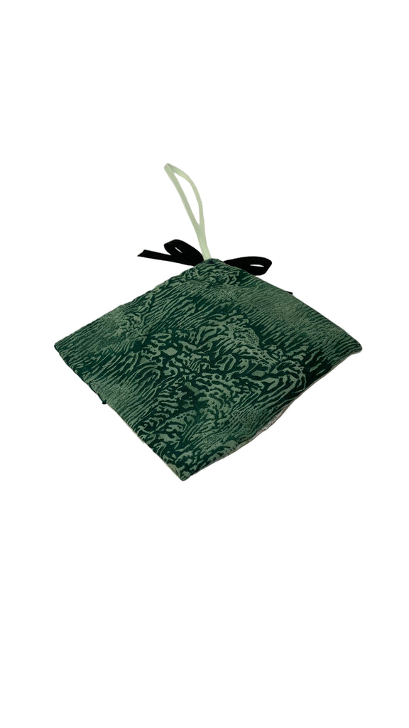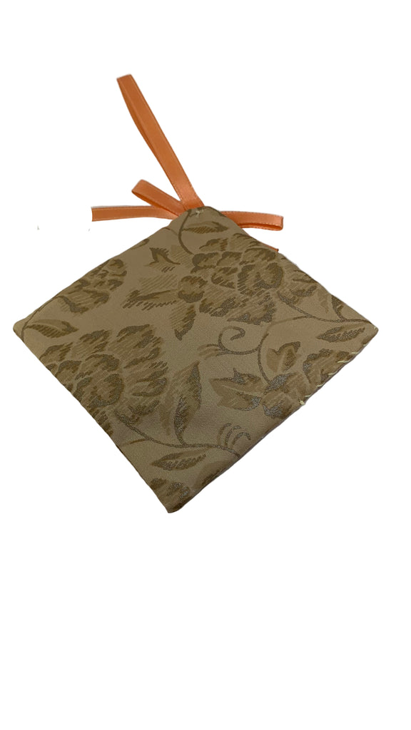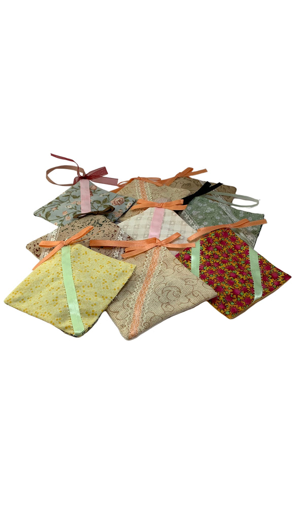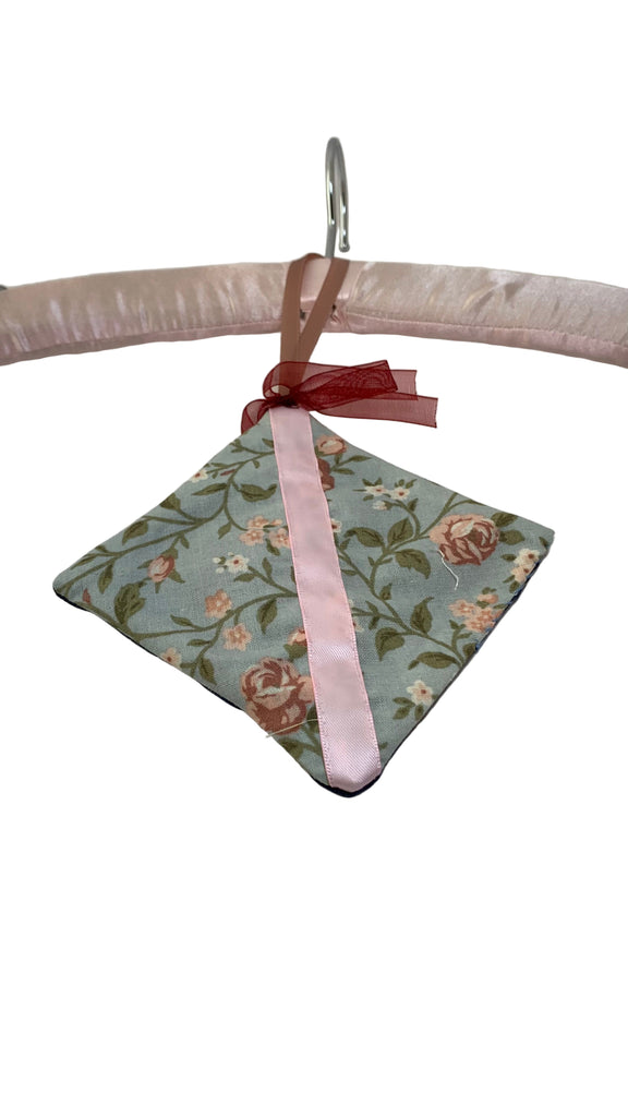 Cotton blend fabric square sachet, ribbon hanging loop